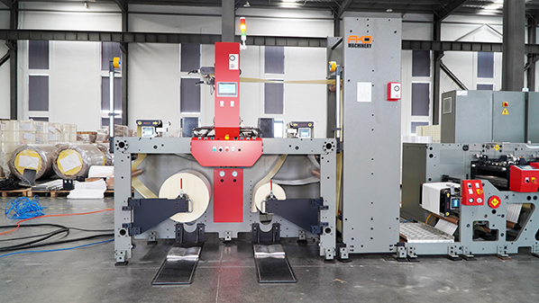 該機(jī)器包括4個(gè)重要部件:不停機(jī)放卷機(jī)、可靠的由伺服驅(qū)動(dòng)的印刷單元、獨(dú)特的臥式高承重模切單元和不停機(jī)收卷機(jī)。